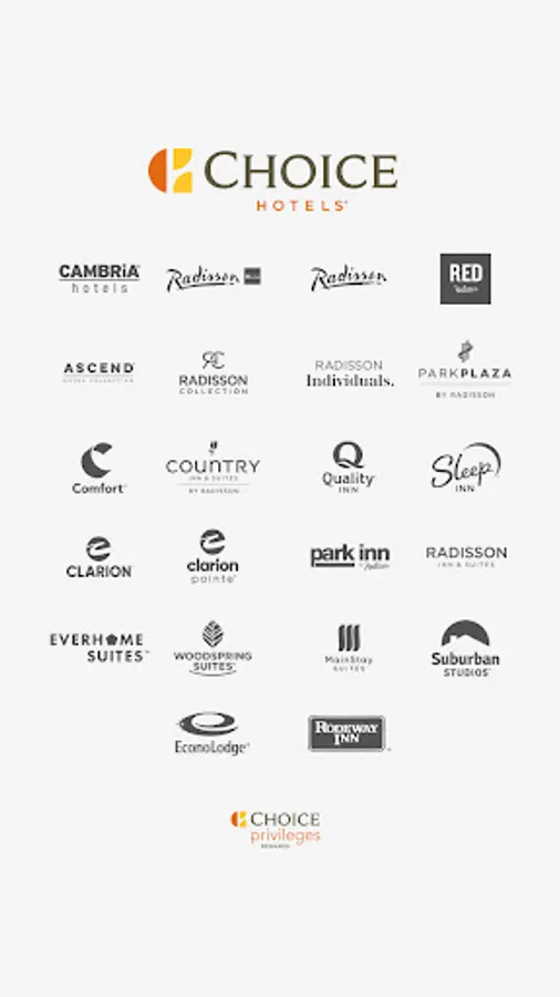 Get the Choice Hotels App® for the best booking experience on your mobile device. Enjoy your stay at any of our brands: Comfort Inn®, Comfort Suites®, Quality Inn®, Sleep Inn®, Clarion®, Clarion Pointe®, Cambria® Hotels & Suites, Mainstay Suites®, Suburban Studios®, Econo Lodge®, Rodeway Inn®, and our Ascend Hotel Collection®.