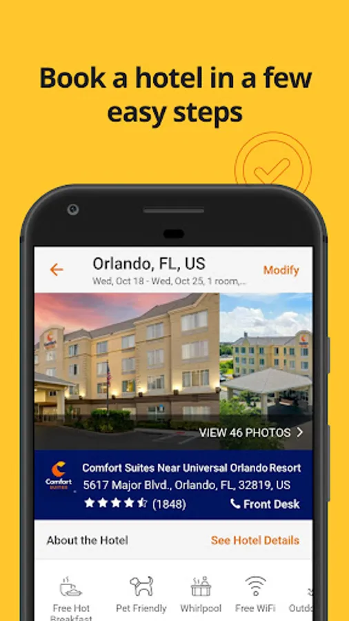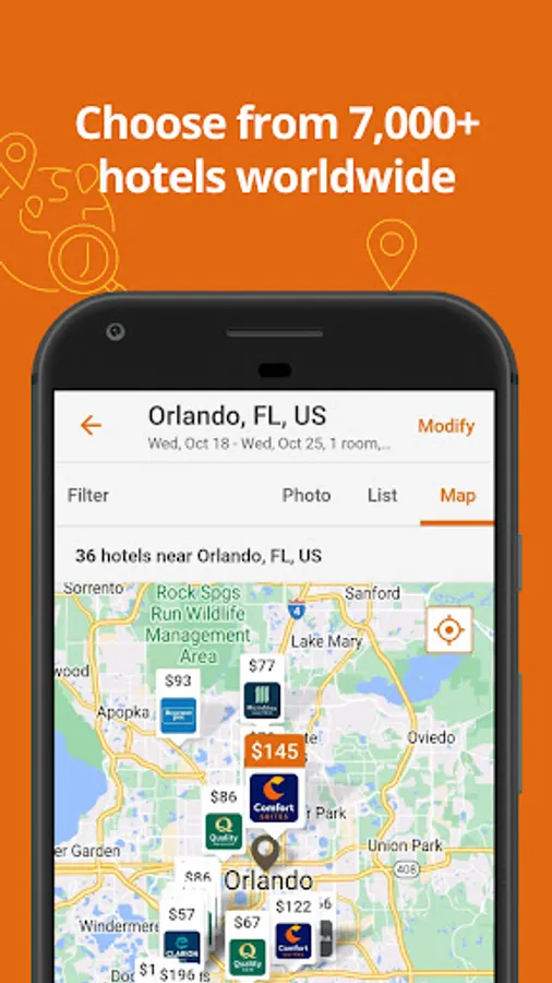 Search nearby hotels, manage your stays, and book rooms with ease and at the lowest price, guaranteed. Whether you’re planning a business trip, family vacation—or just need to make a last-minute reservation—the Choice Hotels App for Android makes traveling easier.