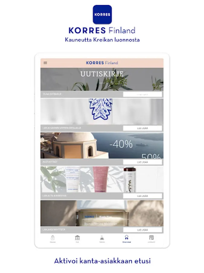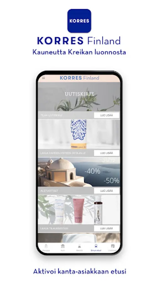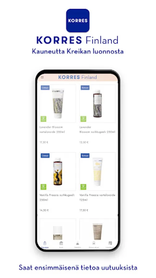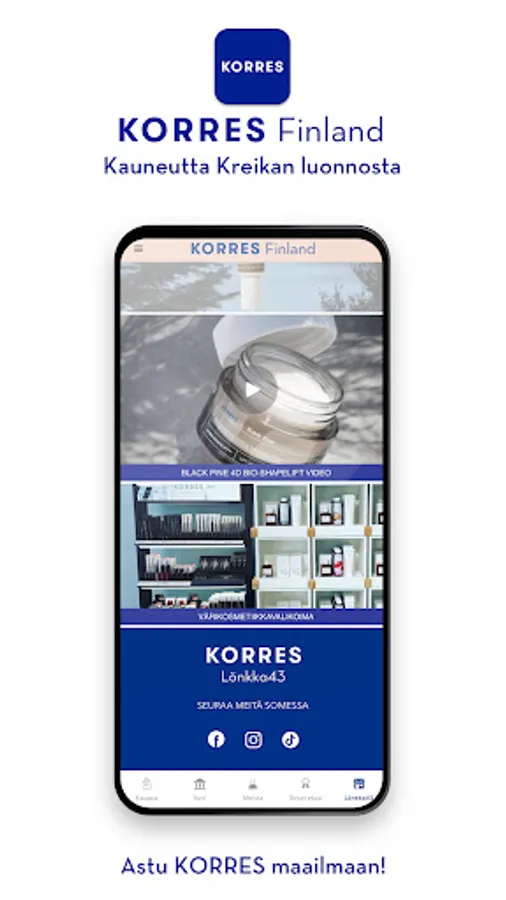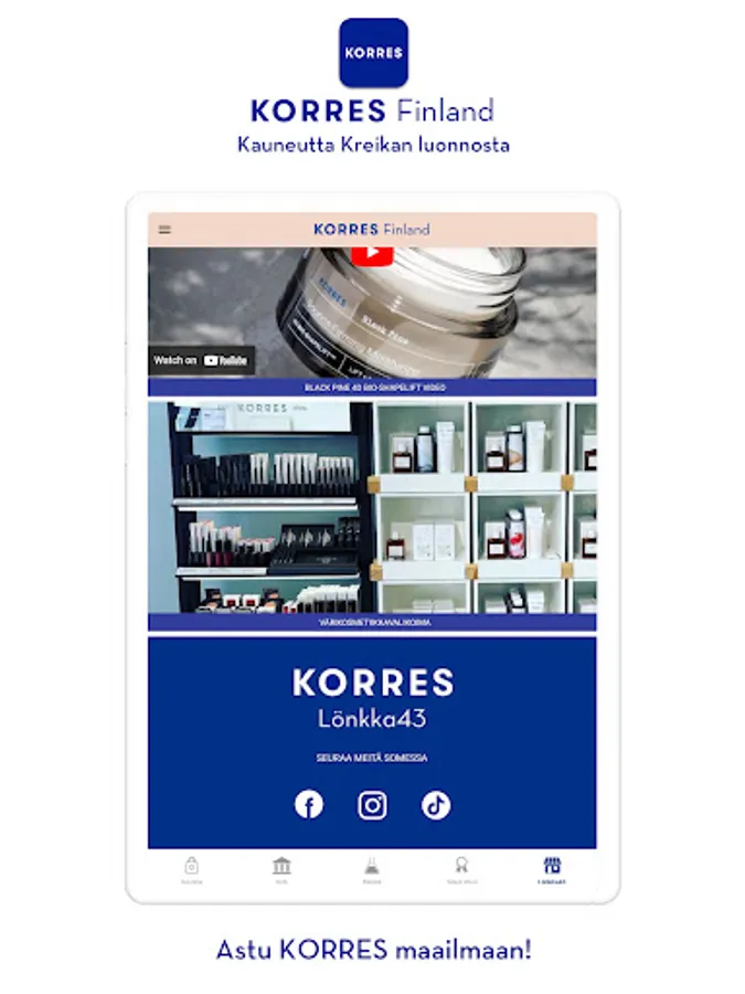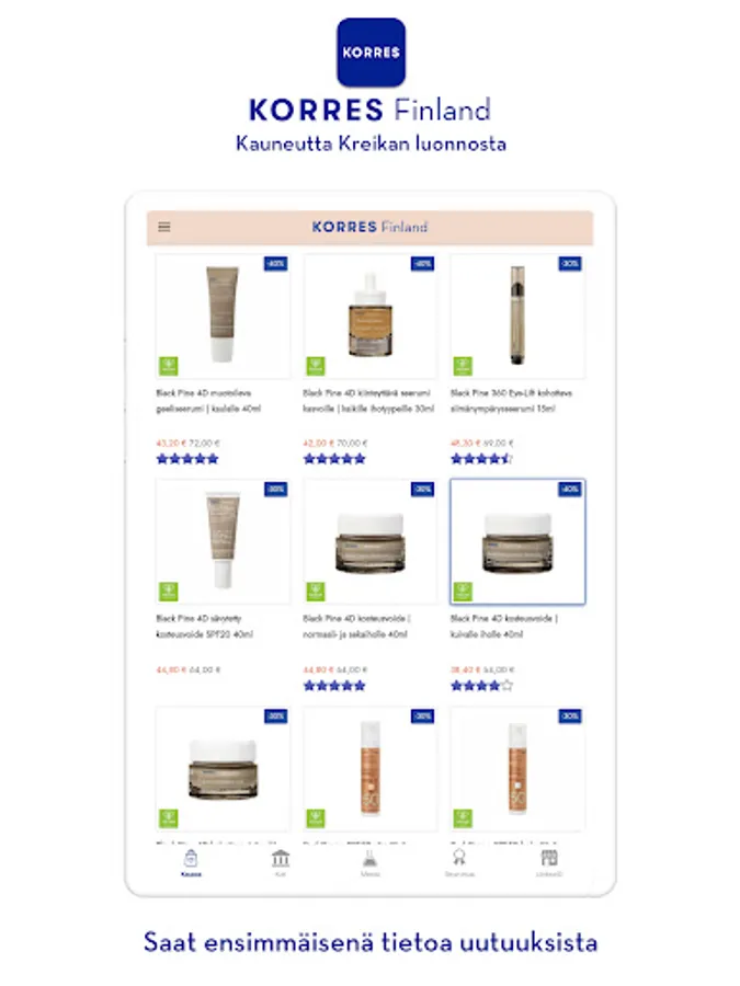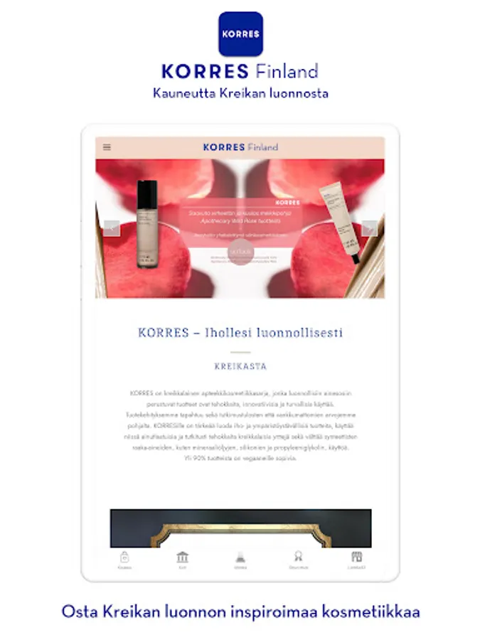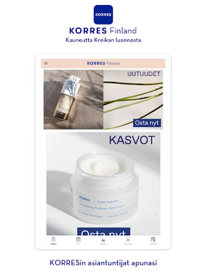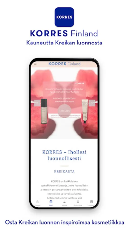 With the KORRES Finland app, you can get acquainted with this series inspired by Greek nature, conveniently shop in our online store and get current benefits, news and skin care tips directly to your smart device.