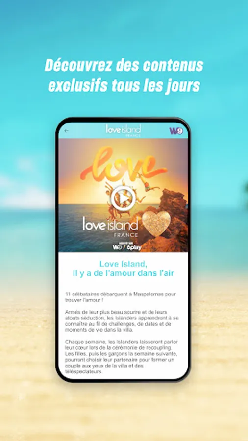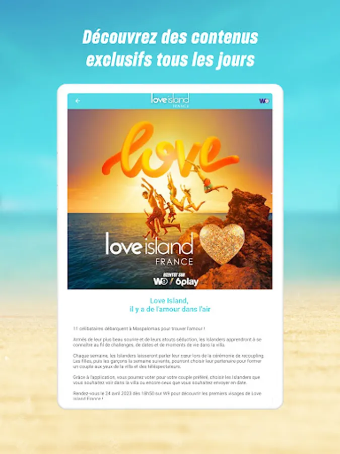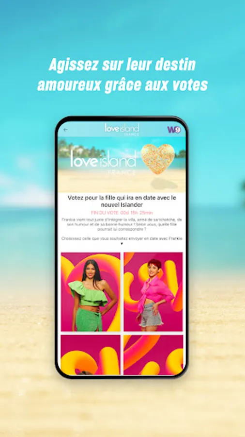 Every day thanks to the application, you will be able to advise the Islanders in their quest for love: vote to choose their favorite couple, choose the singles who will join the adventure... It is you who have the power!