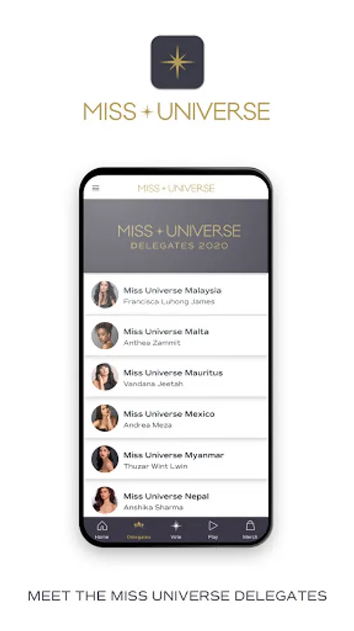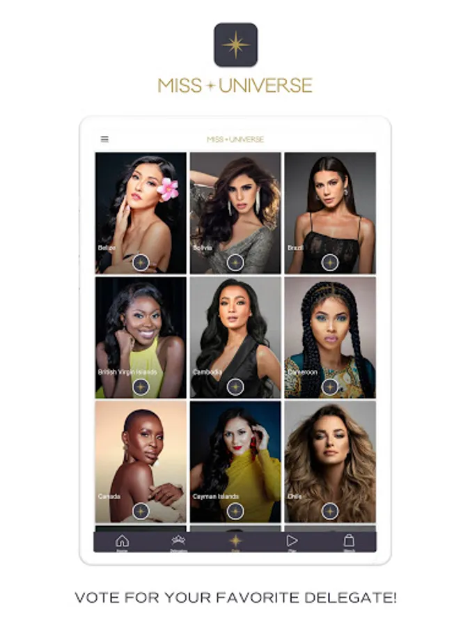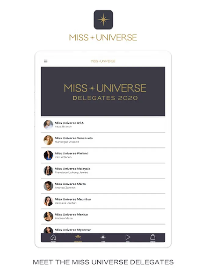 Download the official MISS UNIVERSE app and vote your favorite delegate into the Top 21 at the 69th Miss Universe Competition. Read delegate bios, view exclusive content and learn more about this year’s competition.