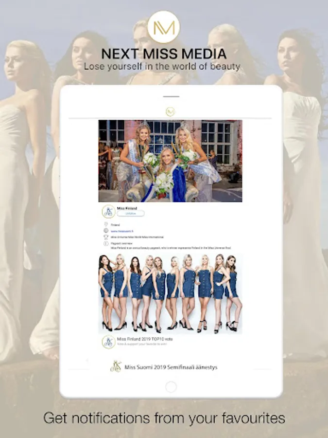 Get the latest news from Next Miss Media to your phone and vote for your favorite beauties from all around the world!