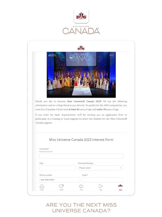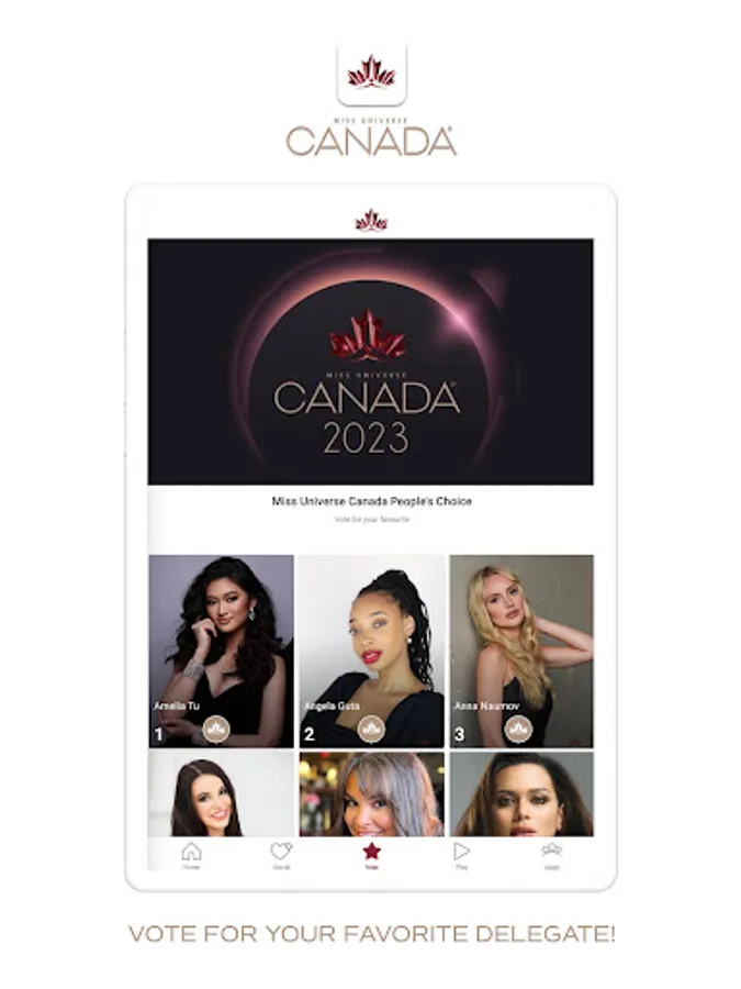 Download the official MISS UNIVERSE CANADA app and vote your favorite delegate at the Miss Universe Canada Competition. Read delegate bios, view exclusive content and learn more about this year’s competition.