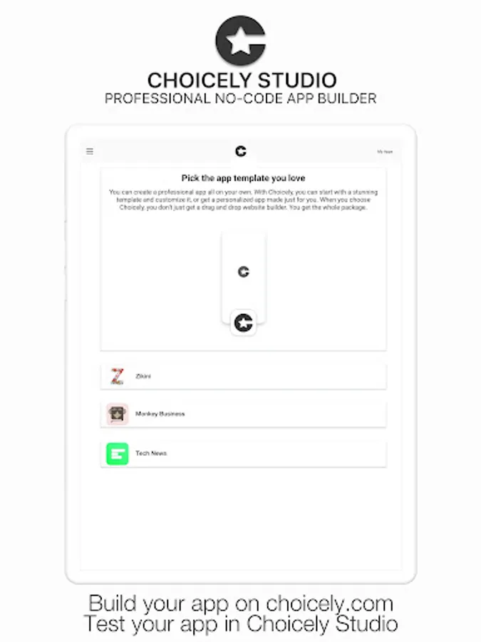 It’s easy to get started with Choicely. Simply create your own application on www.choicely.com and test it right away with Choicely Studio app.