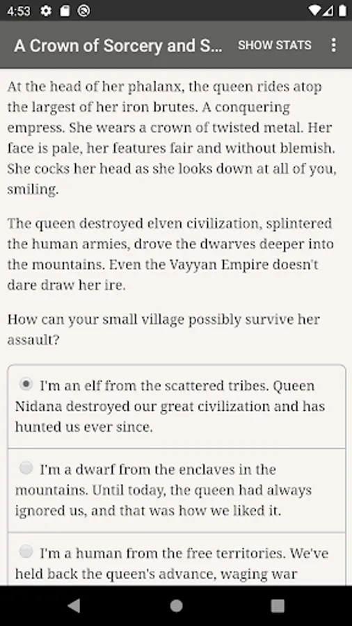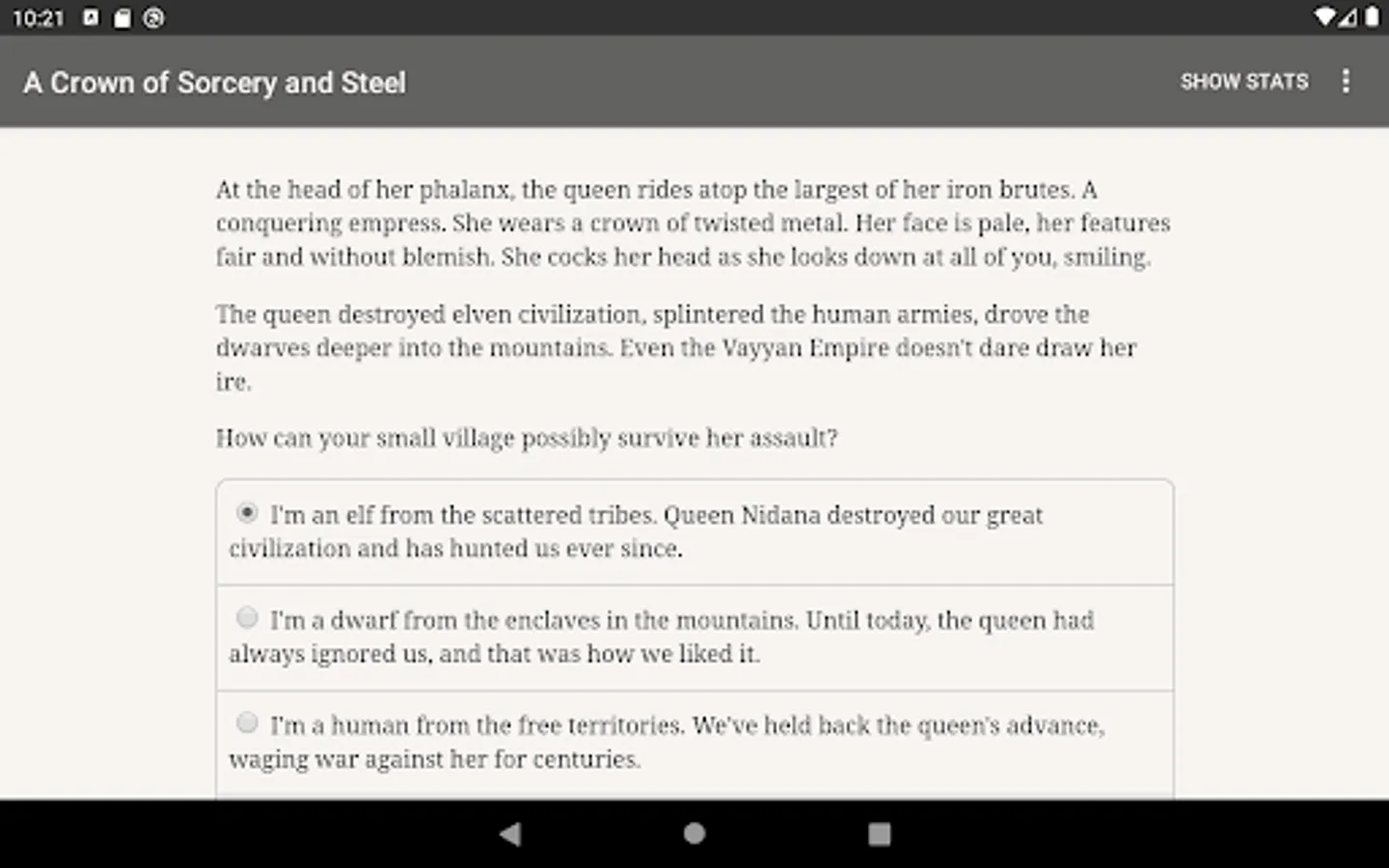 “A Crown of Sorcery and Steel” is a 450,000-word interactive fantasy novel by Josh Labelle. It’s entirely text-based, without graphics or sound effects, and fueled by the vast, unstoppable power of your imagination.