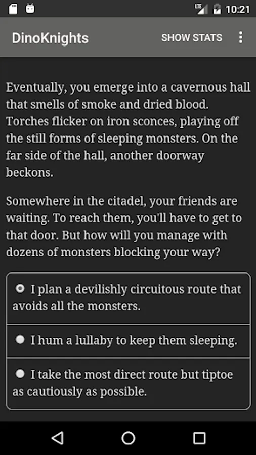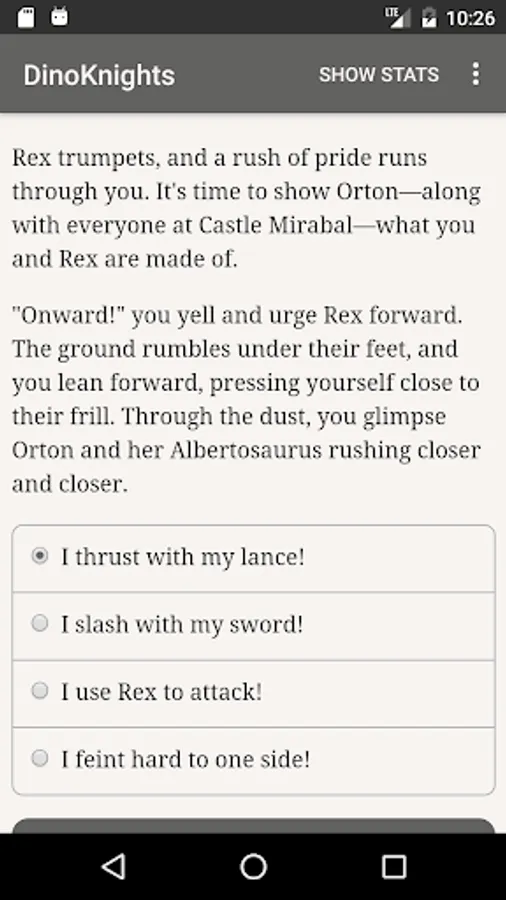 "DinoKnights" is a 177,000-word interactive fantasy novel by K.T. Bryski, where your choices control the story. It's entirely text-based—without graphics or sound effects—and fueled by the vast, unstoppable power of your imagination.