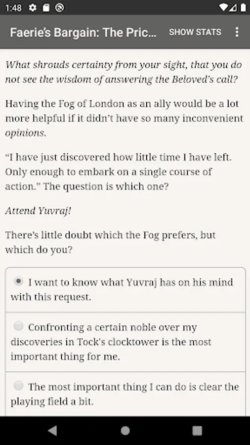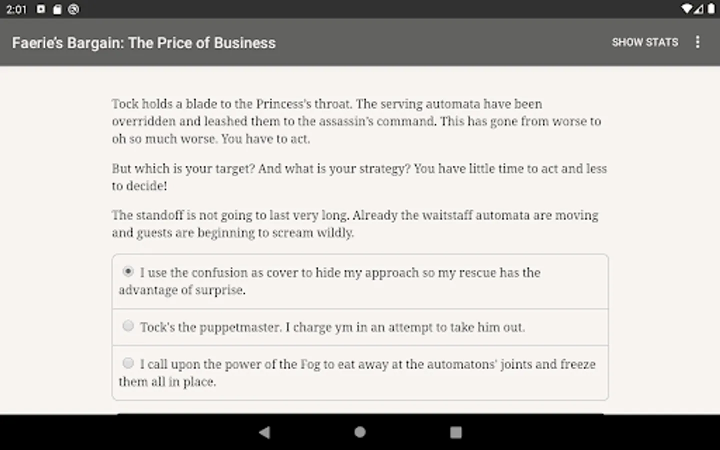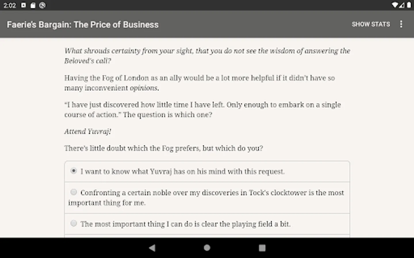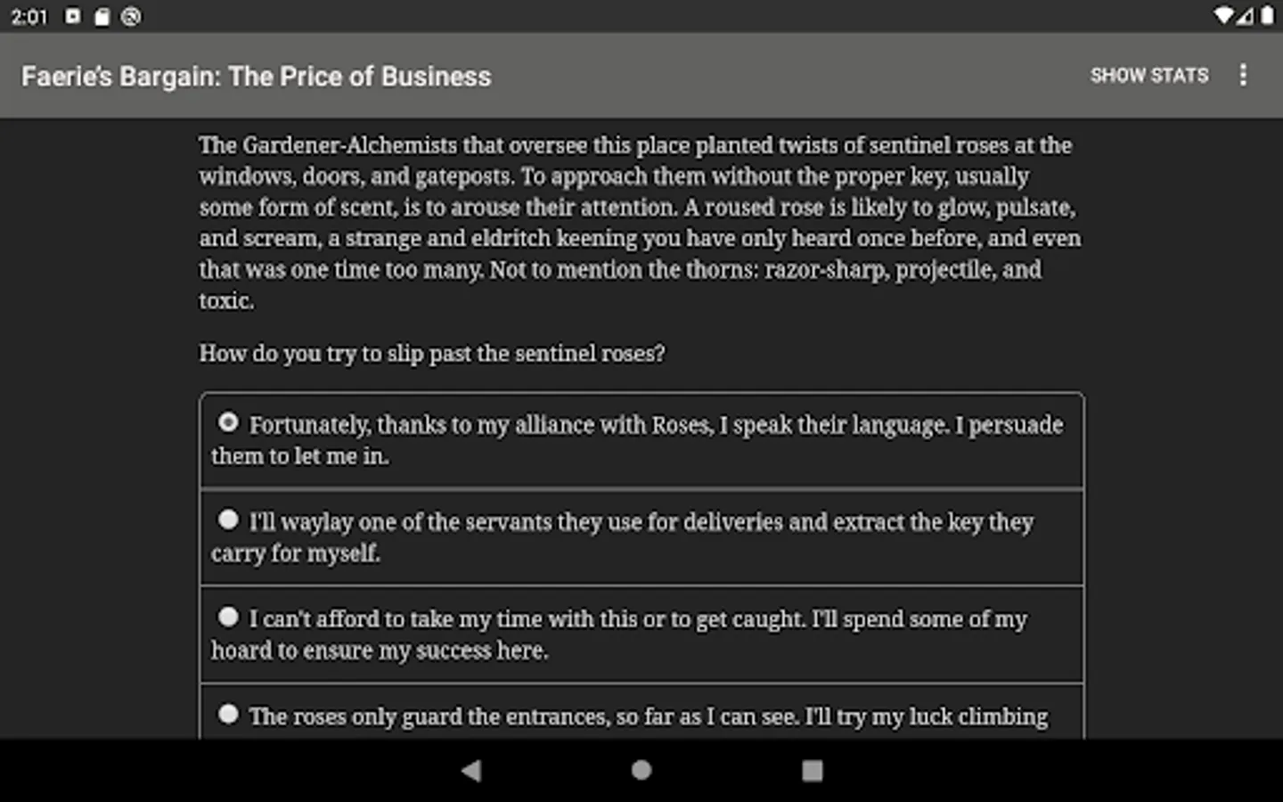 "Faerie's Bargain: The Price of Business" is a 300,000-word interactive fantasy novel by Trip Galey where your choices control the story. It's entirely text-based—without graphics or sound effects—and fueled by the vast, unstoppable power of your imagination.
