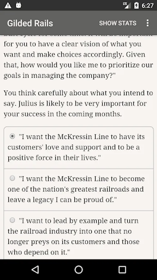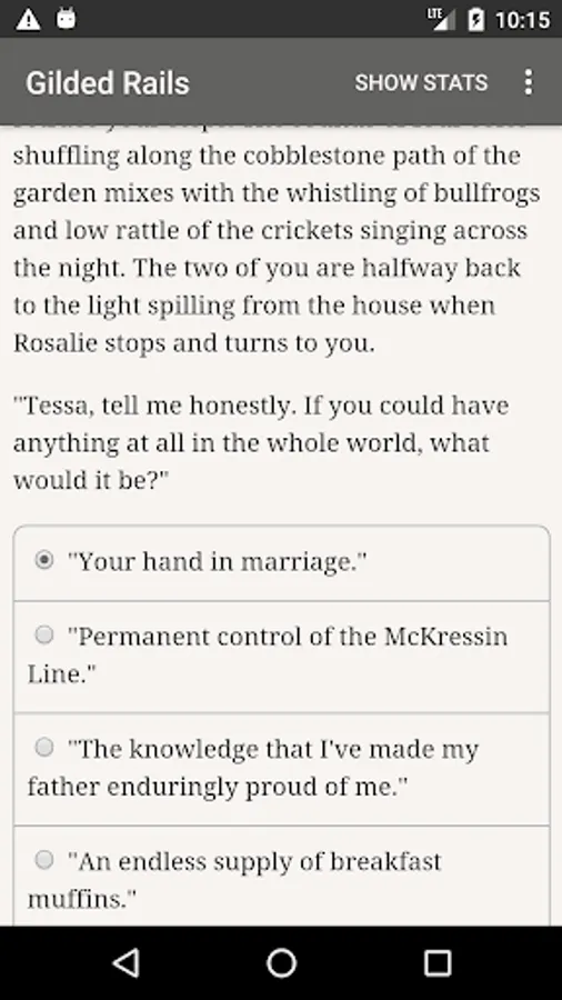 "Gilded Rails" is a 340,000-word interactive dating-management novel by Anaea Lay, where your choices control the story. It's entirely text-based—without graphics or sound effects—and fueled by the vast, unstoppable power of your imagination.