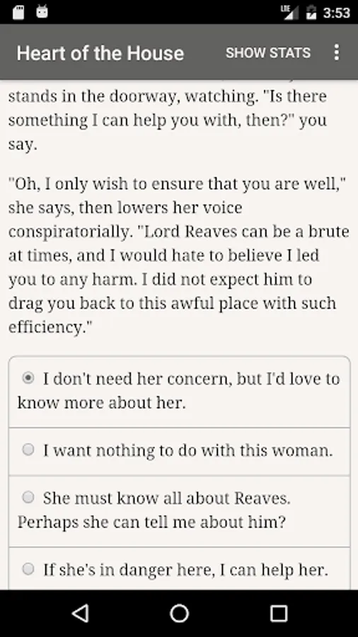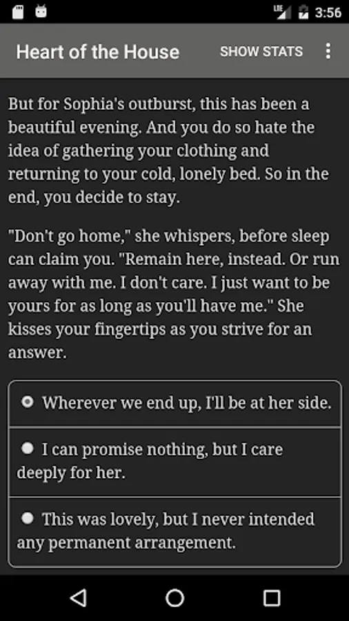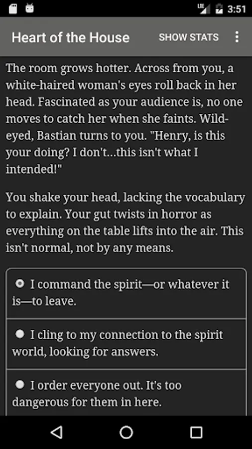 "Heart of the House" is 360,000-word interactive Gothic novel by Nissa Campbell. It's entirely text-based—without graphics or sound effects—and fueled by the vast, unstoppable power of your imagination.