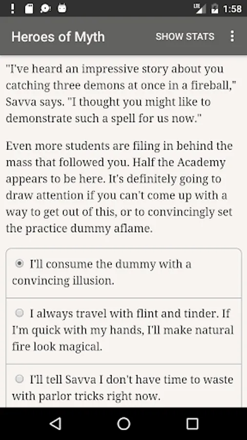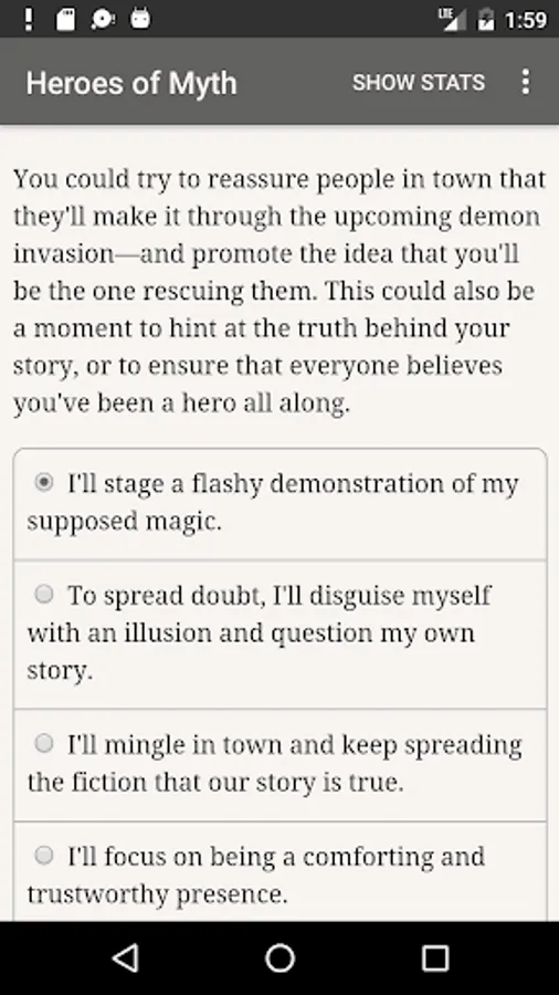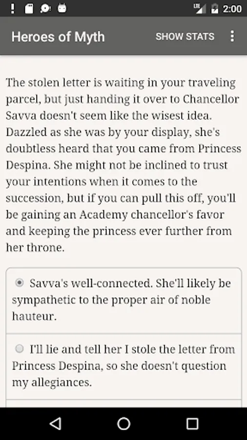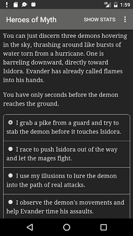 "Heroes of Myth" is a 560,000-word interactive novel by Abigail C. Trevor, where your choices control the story. It's entirely text-based, without graphics or sound effects, and fueled by the vast, unstoppable power of your imagination.