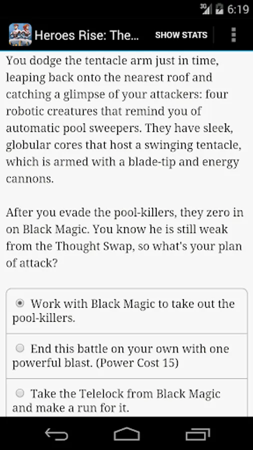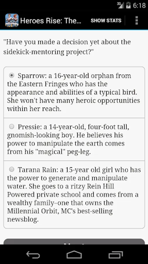 "Heroes Rise: The Prodigy" is an interactive novel where you control the main character. In each chapter, your choices determine how the story proceeds.