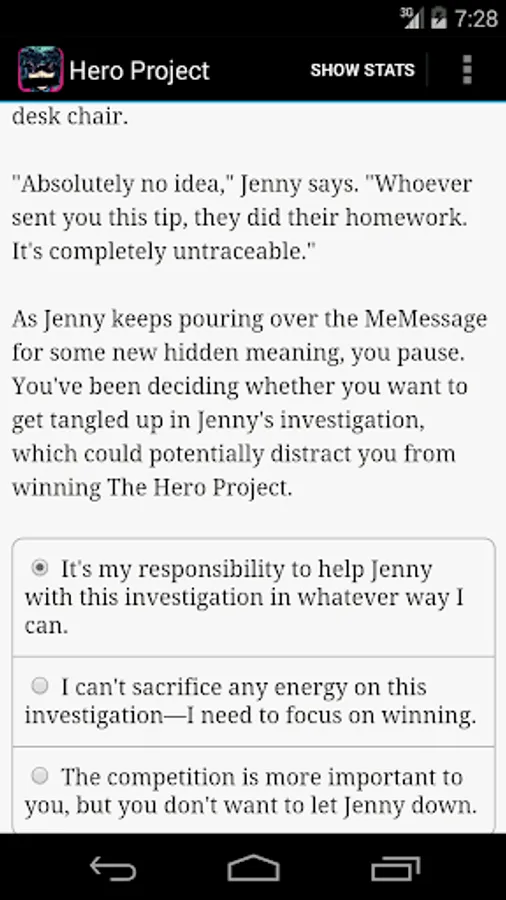 "Heroes Rise: The Hero Project" is the sequel to last year's hit "Heroes Rise: The Prodigy," the epic interactive novel by Zachary Sergi, where your choices determine how the story proceeds. The game is entirely text-based--without graphics or sound effects--and driven by the vast, unstoppable power of your imagination.