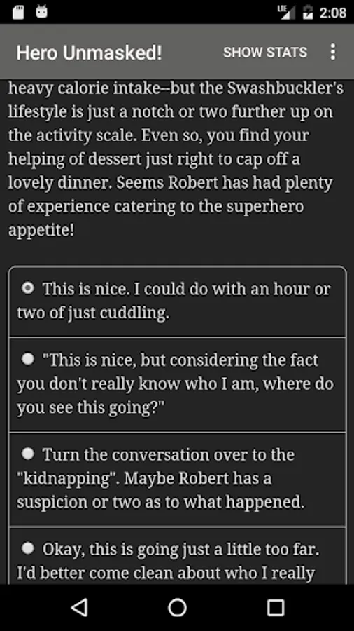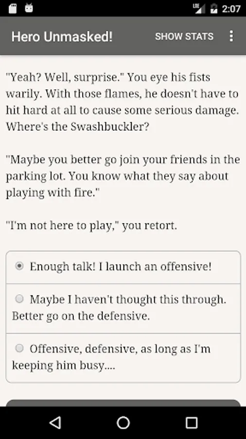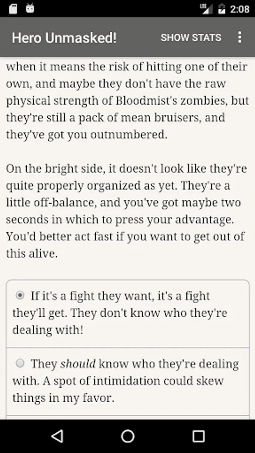 The Hero Unmasked is a 300,000 word interactive novel by Christopher Huang. It's entirely text-based, without graphics or sound effects, and fueled by the vast, unstoppable power of your imagination.