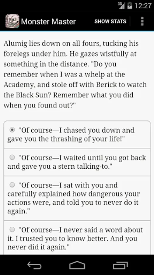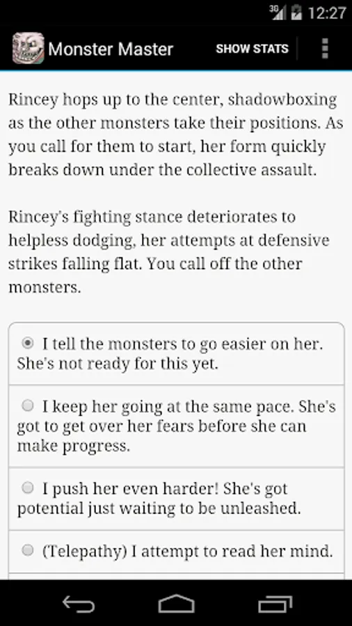 "The Last Monster Master" is an epic 250,000-word interactive fantasy novel by Ben Serviss, where your choices control the story. It's entirely text-based—without graphics or sound effects—and fueled by the vast, unstoppable power of your imagination.