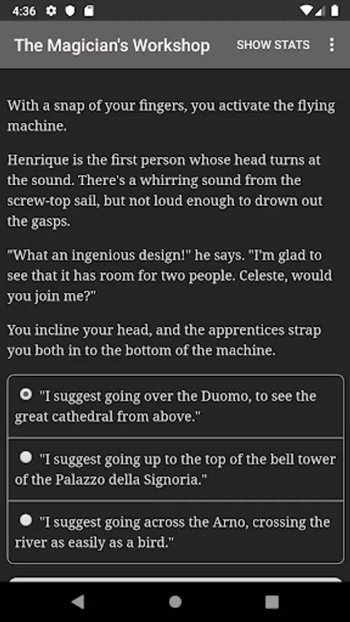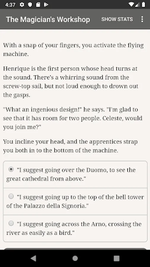 The Magician’s Workshop is a 190,000-word interactive historical fantasy novel by Kate Heartfield, where your choices control the story. It's entirely text-based—without graphics or sound effects—and fueled by the vast, unstoppable power of your imagination.