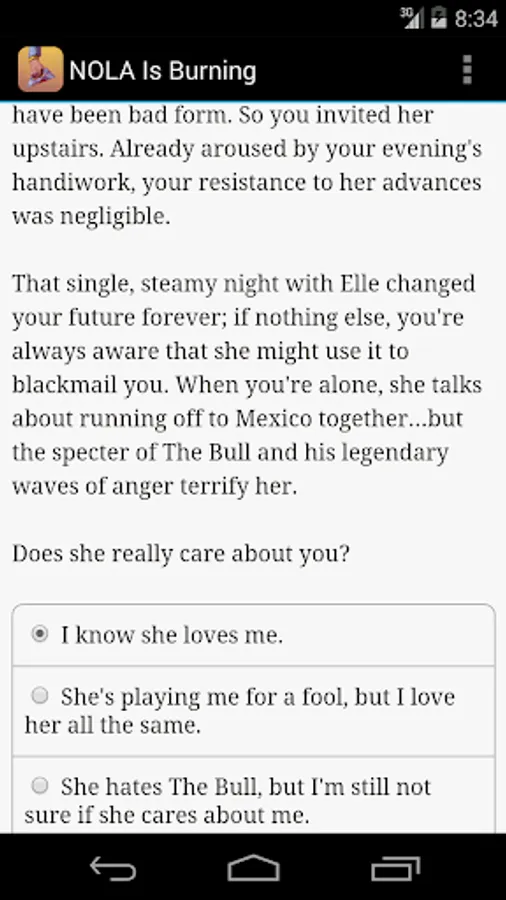 "NOLA Is Burning" is a blood-soaked interactive noir thriller where your choices control the story. The game is entirely text-based--without graphics or sound effects--and powered by the vast, unstoppable power of your imagination.