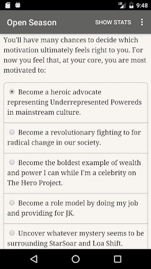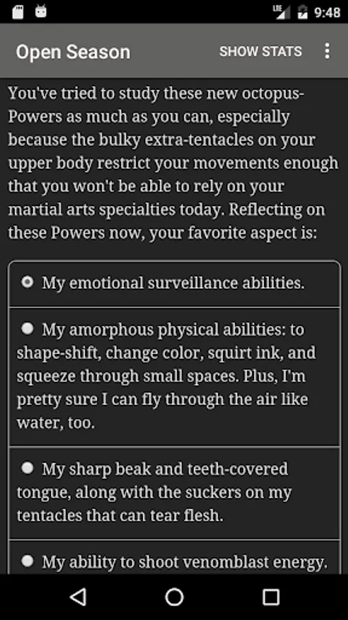 "The Hero Project: Open Season" is a 170,000-word interactive novel, and the final installment of Zachary Sergi's "Hero Project" series. It's entirely text-based--without graphics or sound effects--and fueled by the vast, unstoppable power of your imagination.