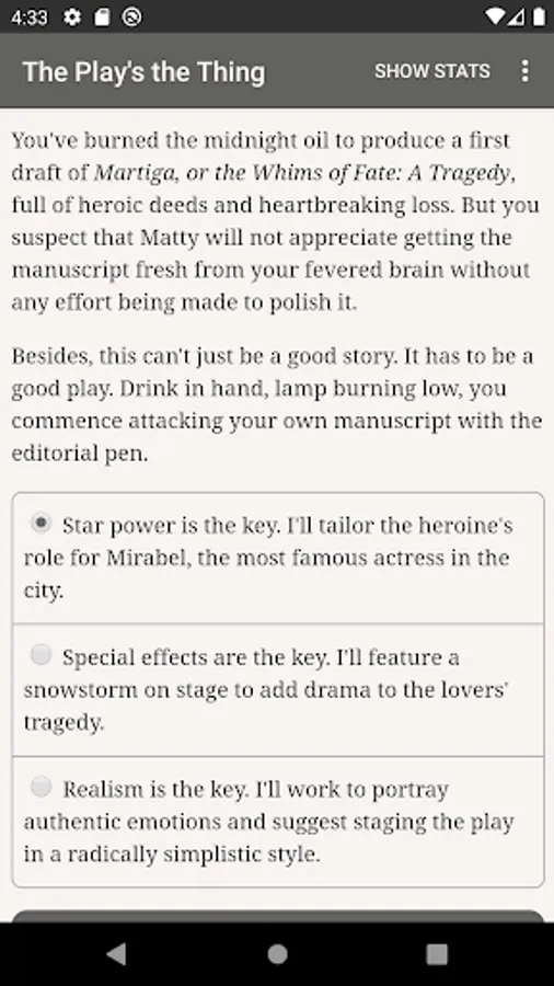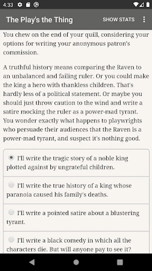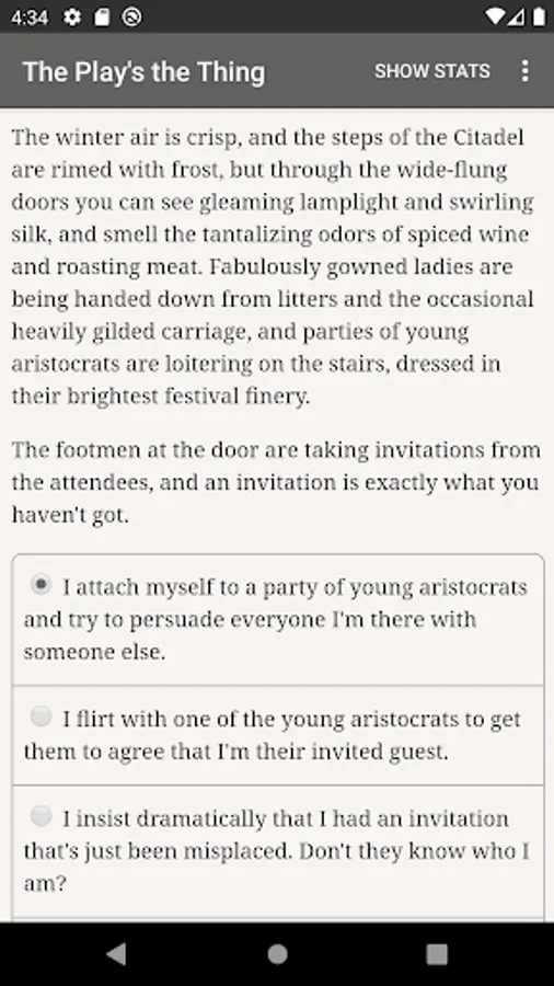 "The Play's the Thing" is a 245,000-word interactive romantic fantasy novel by Jo Graham and Amy Griswold, best-selling authors of "Stronghold: A Hero's Fate" and "The Eagle's Heir." It's entirely text-based, without graphics or sound effects, and fueled by the vast, unstoppable power of your imagination.