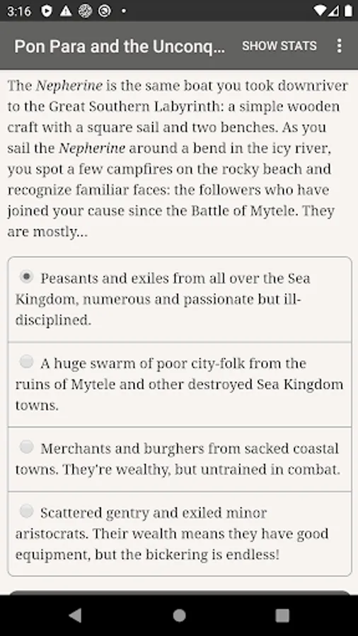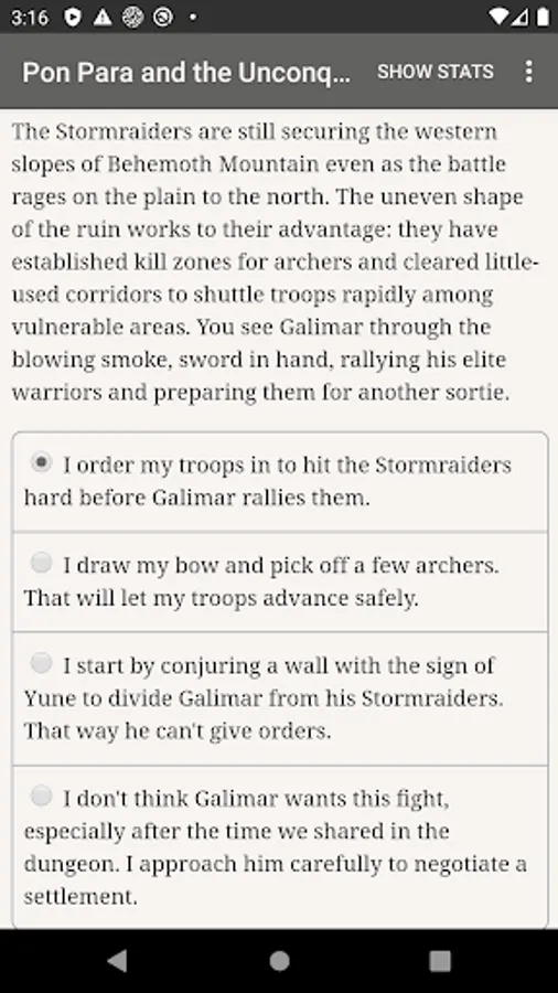 "Pon Para and the Unconquerable Scorpion" is a 742,000-word interactive fantasy novel by Kyle Marquis, and the sequel to "Pon Para and the Great Southern Labyrinth."
