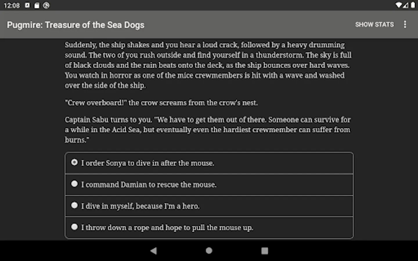 "Pugmire: Treasure of the Sea Dogs" is a 100,000-word interactive nautical tail by Eddy Webb, where your choices control the story. It's entirely text-based—without graphics or sound effects—and fueled by the vast, unstoppable power of your imagination.