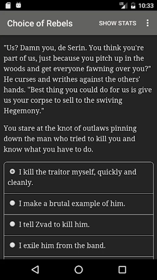 "Choice of Rebels: Uprising" is a 637,000 word interactive fantasy novel by Joel Havenstone, where your choices control the story. It's entirely text-based—without graphics or sound effects—and fueled by the vast, unstoppable power of your imagination.