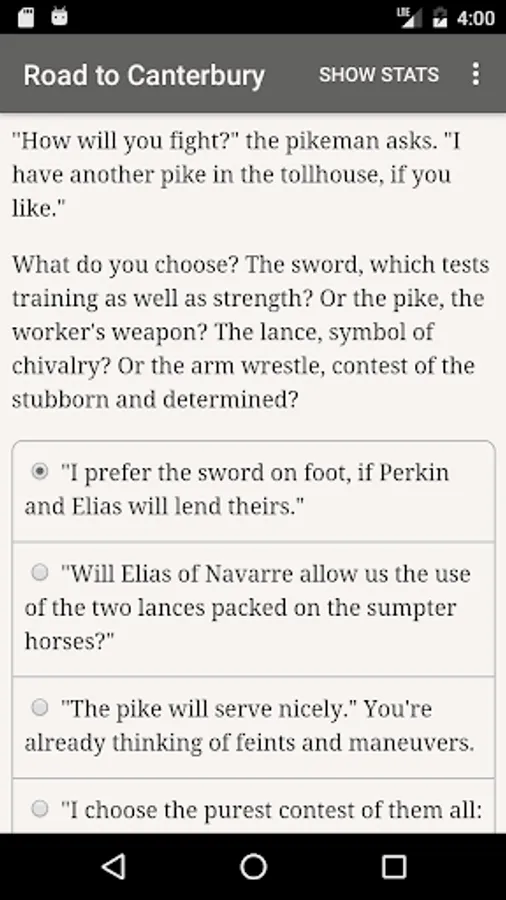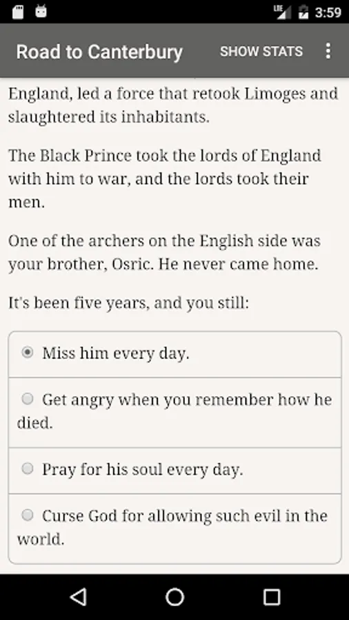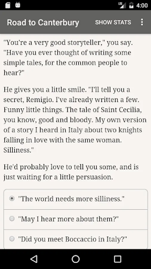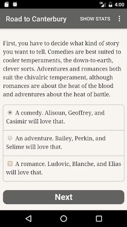 You are a young pauper on a secret mission. Join a pilgrimage to Canterbury with the powerful noblewoman Philippa de Roet, co-sister-in-law to the Black Prince, and Philippa's husband, Geoffrey Chaucer himself, the customs agent, spy, and occasional poet. Your mission is to persuade Philippa to change the course of history.