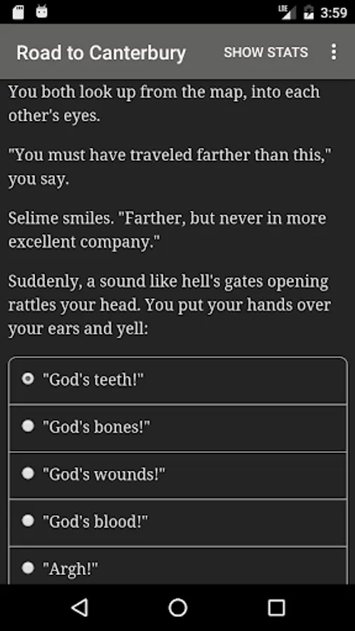 "The Road to Canterbury" is a 175,000-word interactive medieval adventure novel, and 2018 Nebula Award for Game Writing Finalist, by Kate Heartfield, where your choices control the story. It's entirely text-based--without graphics or sound effects--and fueled by the vast, unstoppable power of your imagination.