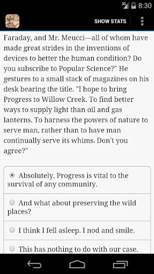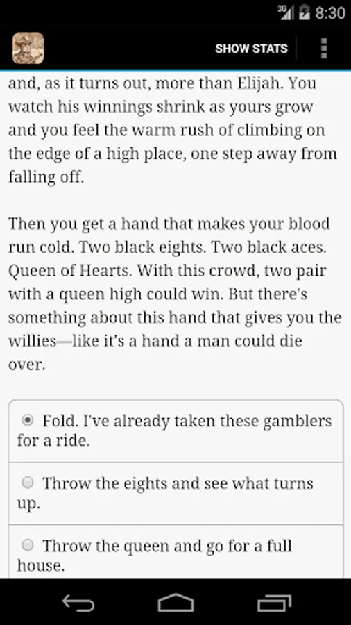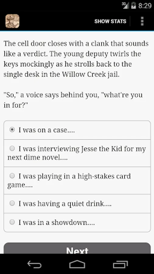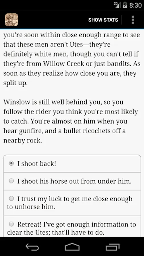 Showdown at Willow Creek is an interactive western mystery novel where your choices control the story. The game is entirely text-based--without graphics or sound effects--but powered by the vast, unstoppable power of your imagination.