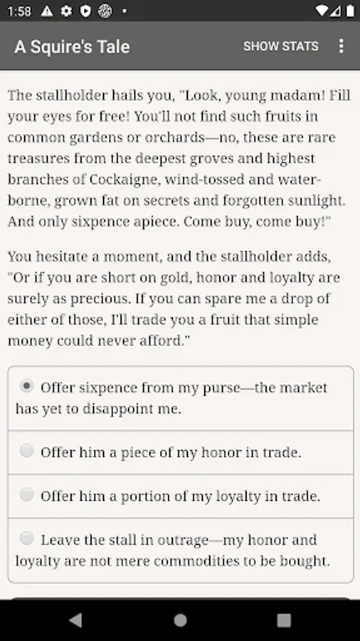 Will you join with the faeries, or deny their existence? Journey further from court and comfort, or seek to rationalize the impossibilities in front of you? As you hunt for clues and amass allies, you’ll master the knightly arts of music, combat, riding, and even falconry. Emerge victorious in the tournament, and you may even win a kiss. But stay focused on your quest--you'll need all your skills to survive the tricks of Faerie and discover the truth behind the prince's disappearance.
