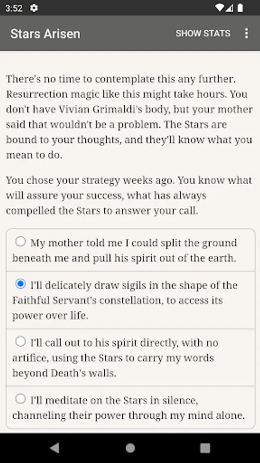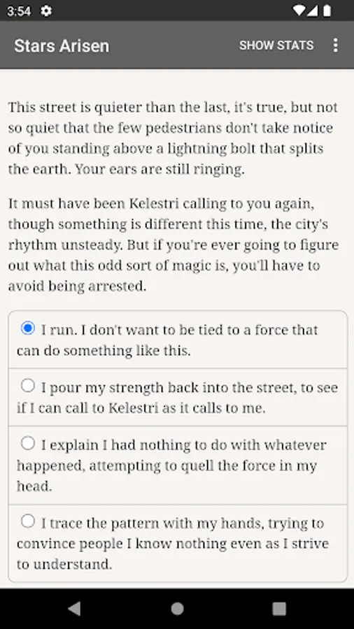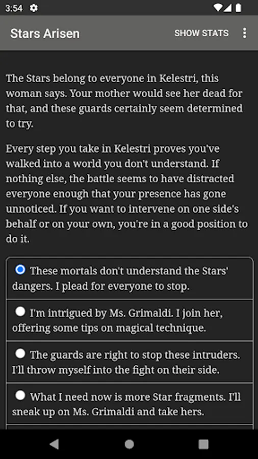 "Stars Arisen" is a one-million-word interactive epic fantasy novel by Abigail C. Trevor, author of Heroes of Myth. It's entirely text-based, without graphics or sound effects, and fueled by the vast, unstoppable power of your imagination.