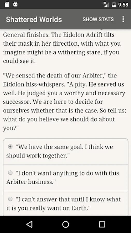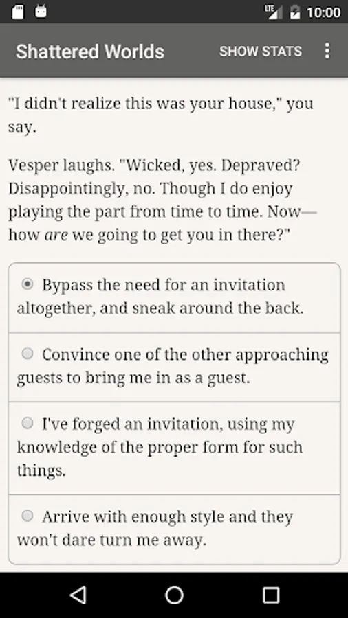 Your employers, the shadowy body known as the Divergent Conclave, are dedicated to maintaining peace between the planets. Impress the Conclave and its members might help you protect Earth—or recruit you to serve their personal agendas. Will you manipulate them to gain their support? If the peace summit falters, will you placate the parties, or choose a faction? How will you stop the impending invasion? And who will you romance?