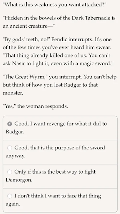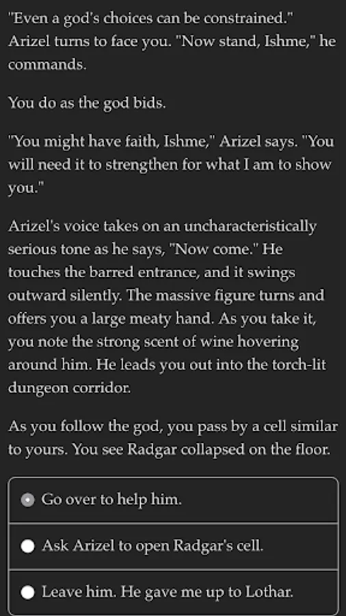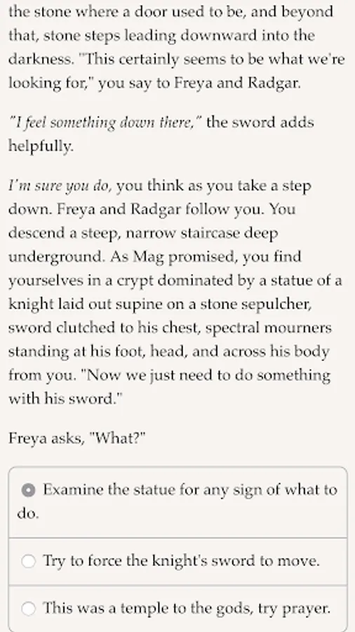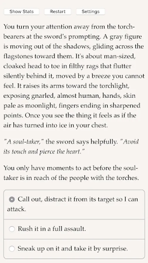 • Save your place before a chapter and you can return to that point after the story’s end and try a different set of choices
