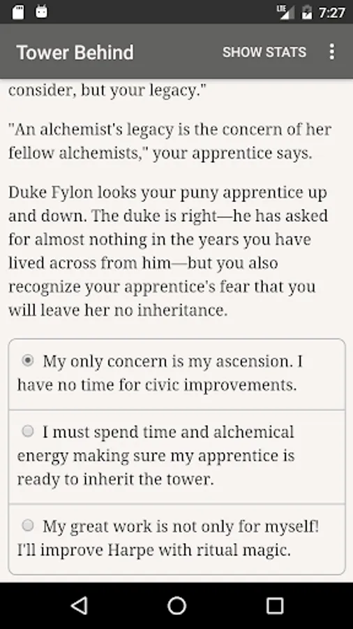 "Tower Behind the Moon" is a 400,000-word interactive epic fantasy novel by Kyle Marquis, where your choices control the story. It's entirely text-based—without graphics or sound effects—and fueled by the vast, unstoppable power of your imagination.