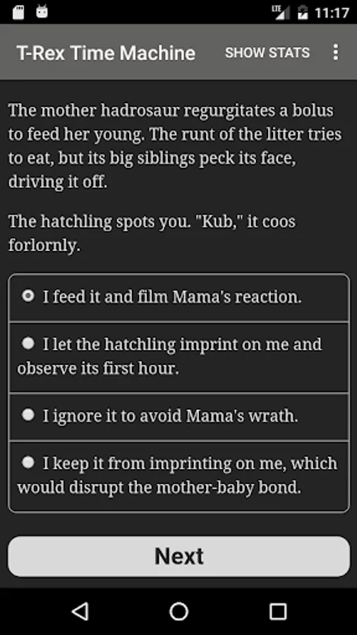 • Feed a baby duckbilled dinosaur and let it imprint on you.