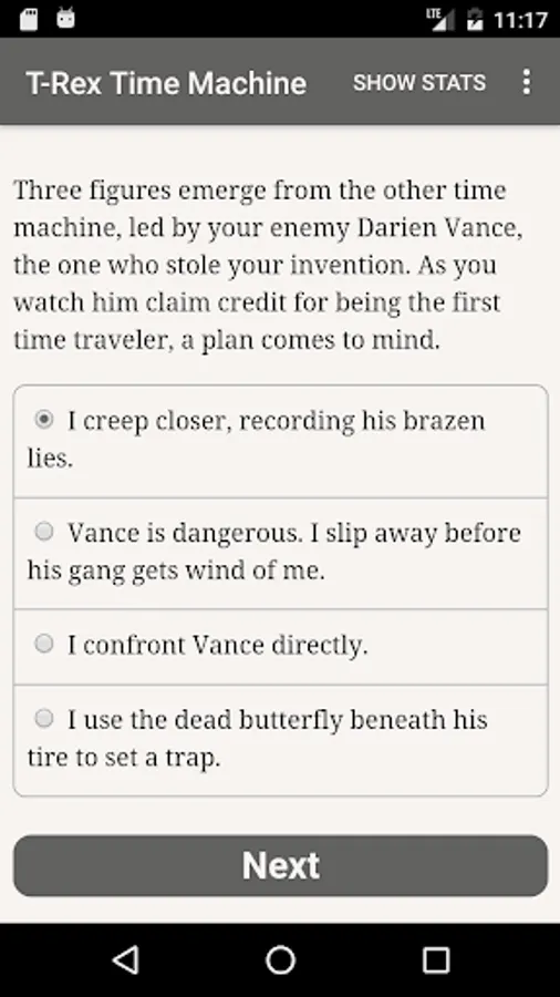 “T-Rex Time Machine” is a 170,000 word interactive adventure novel by Rosemary Claire Smith, where your choices control the story. It's entirely text-based—without graphics or sound effects—and fueled by the vast, unstoppable power of your imagination.