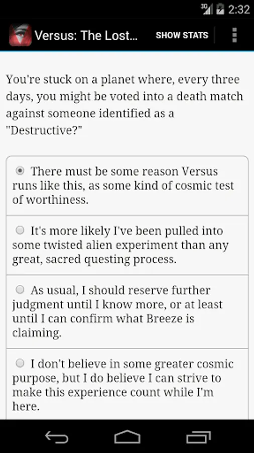 "VERSUS: The Lost Ones" is a thrilling 123,000-word interactive novel, the first in a new series, by Zachary Sergi, author of our best-selling "Heroes Rise" trilogy. Your choices control the story. It's entirely text-based--without graphics or sound effects--and fueled by the vast, unstoppable power of your imagination.