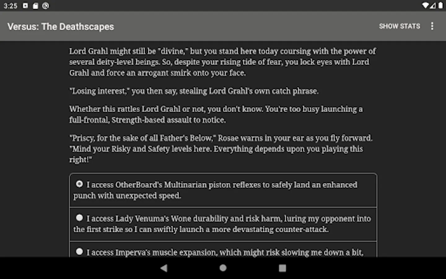 "VERSUS: The Deathscapes" is a thrilling 200,000-word interactive novel by Zachary Sergi, author of our best-selling "Heroes Rise" series. Your choices control the story. It's entirely text-based--without graphics or sound effects--and fueled by the vast, unstoppable power of your imagination.