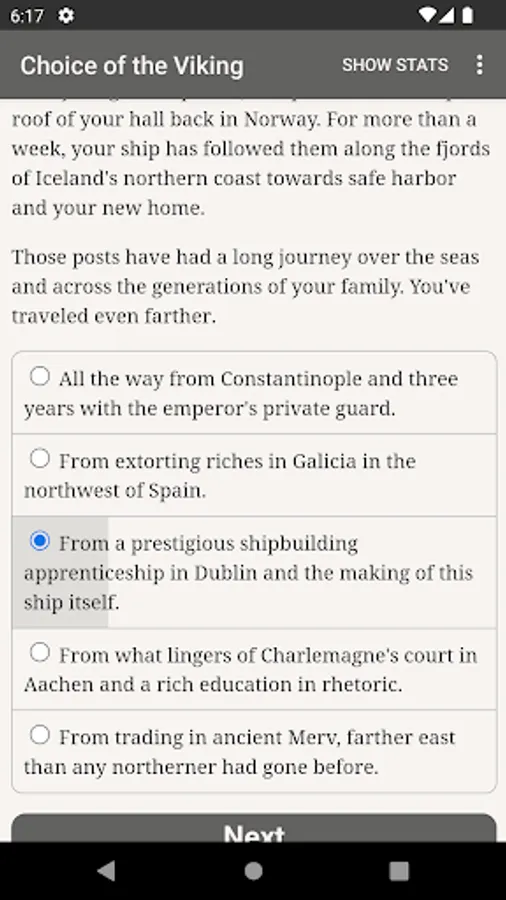 "Choice of the Viking" is a 310,000 word interactive historical fantasy novel by Declan Taggart, where your choices control the story. It's entirely text-based—without graphics or sound effects—and fueled by the vast, unstoppable power of your imagination.