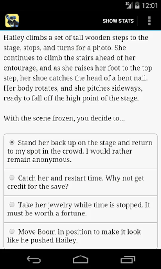 • Develop relationships with one of four main romantic options (or a secret one). Track your relationships and moral stats as they change.