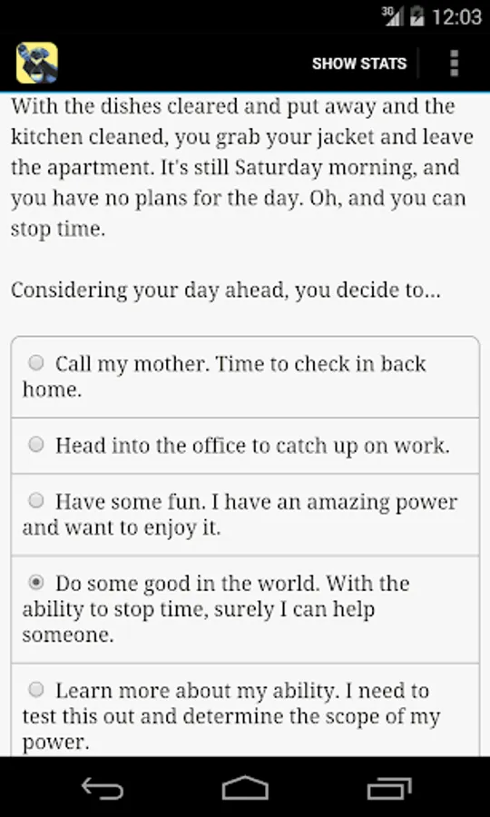 "A Wise Use of Time" is a thrilling 260,000-word interactive sci-fi novel by Jim Dattilo, author of "Zombie Exodus," winner of the 2011 XYZZY "Special Recognition" award for interactive fiction. Your choices control the story. It's entirely text-based--without graphics or sound effects--and fueled by the vast, unstoppable power of your imagination.