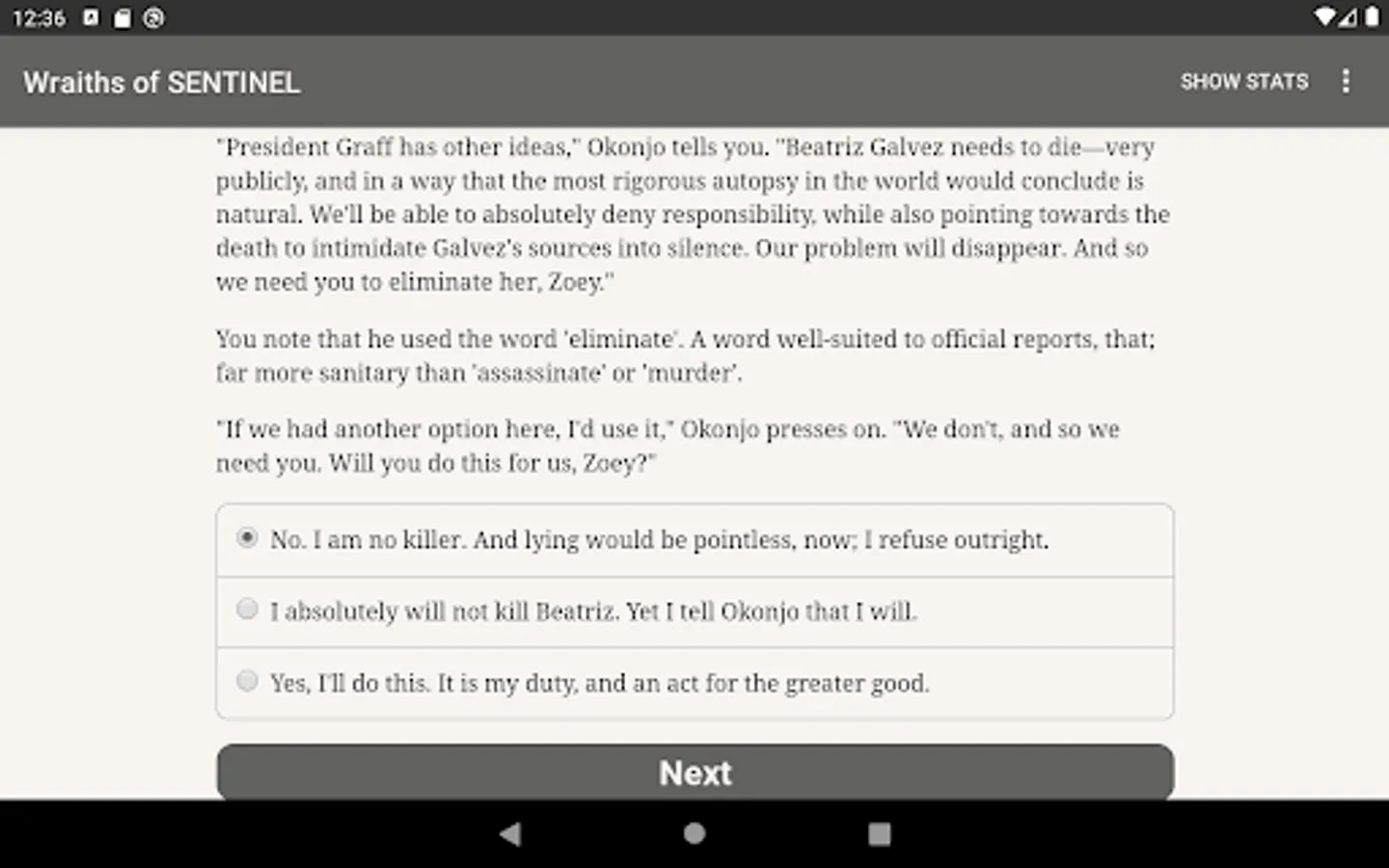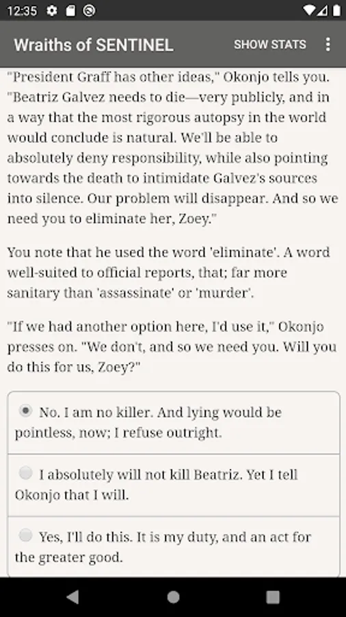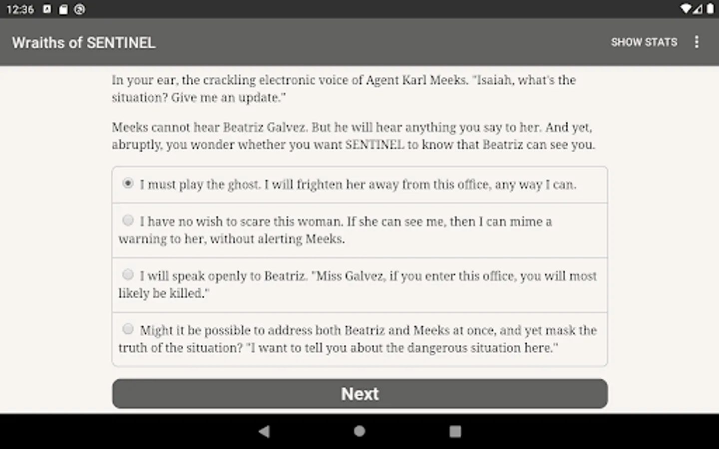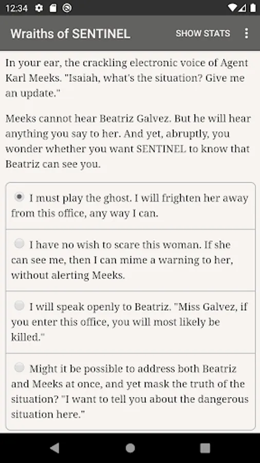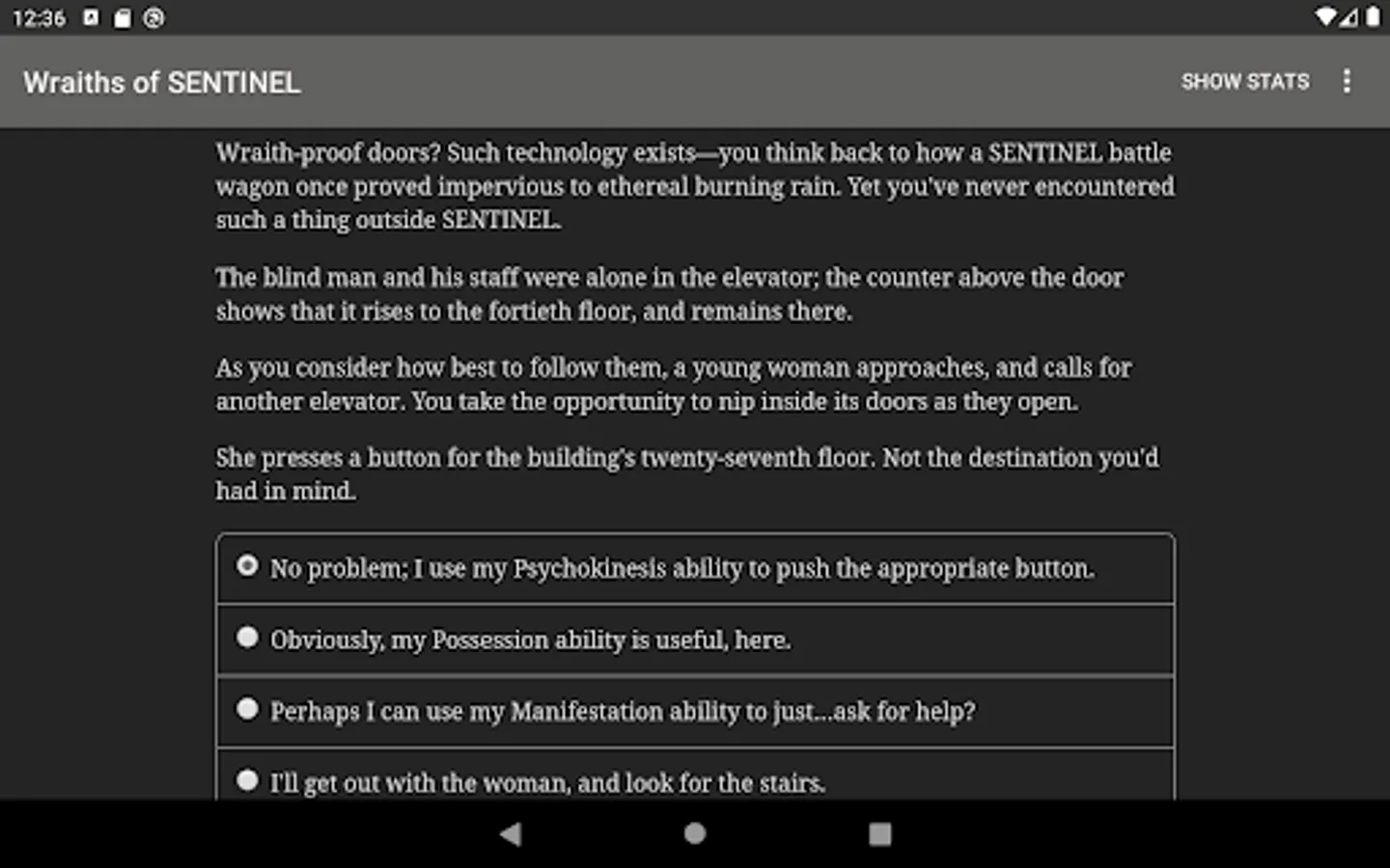 "Wraiths of SENTINEL" is a 250,000-word interactive novel by Paul Gresty where your choices control the story. It's entirely text-based—without graphics or sound effects—and fueled by the vast, unstoppable power of your imagination.