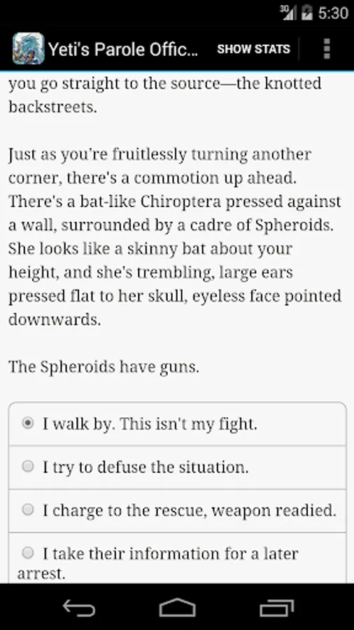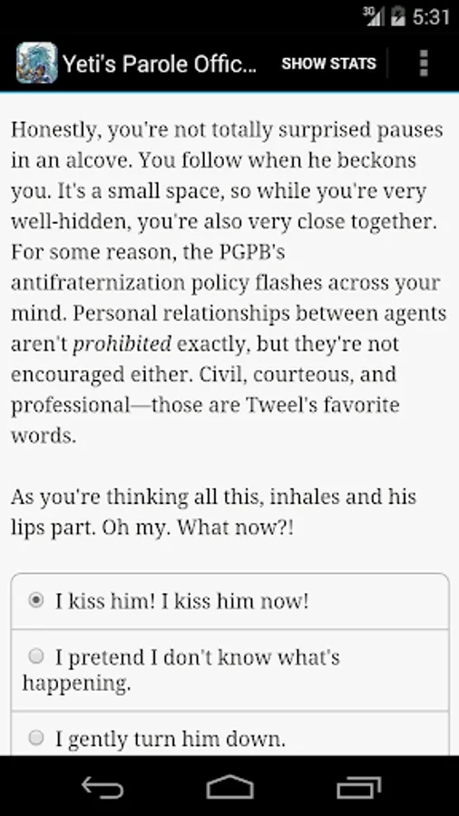 "Yeti's Parole Officer" is a hilarious interactive sci-fi novel by KT Bryski, where your choices control the story. It's entirely text-based--without graphics or sound effects--and fueled by the vast, unstoppable power of your imagination.