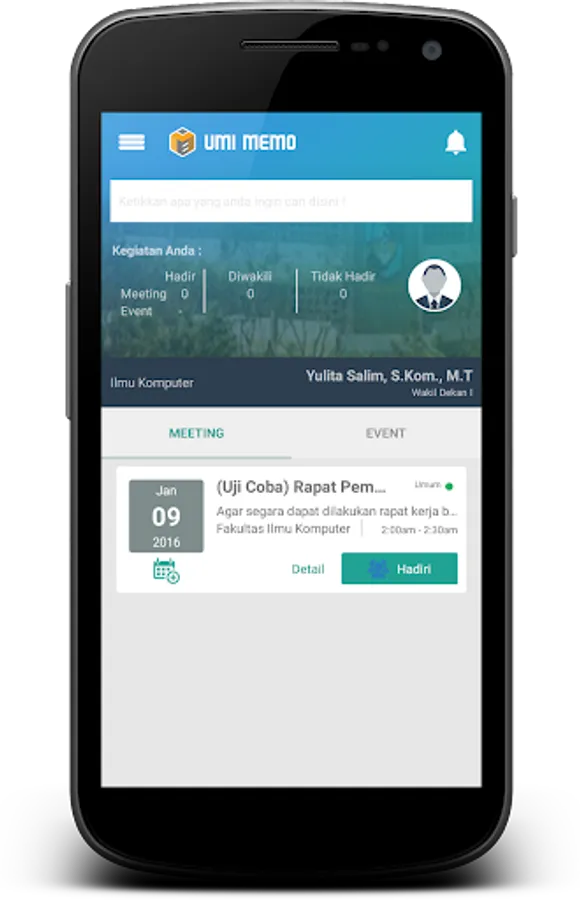 UMI MEMO is a meeting and event management application specifically intended for the entire academic community of the Muslim University of Indonesia
