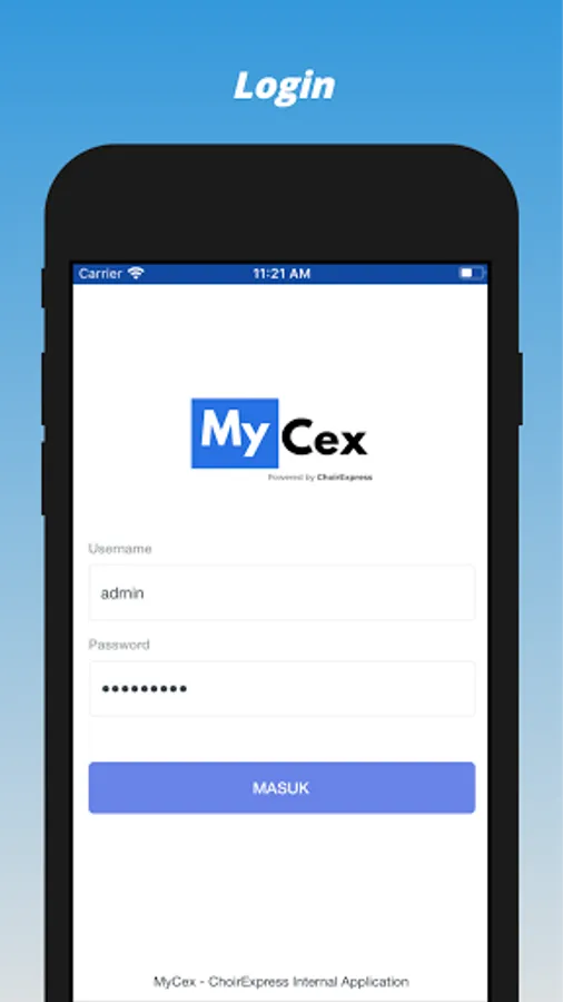 MyCex is an application intended for Choir Express operational activities.