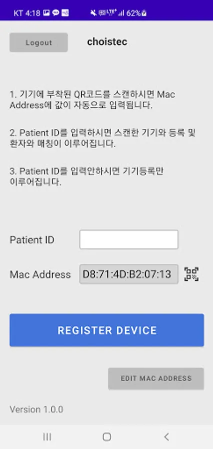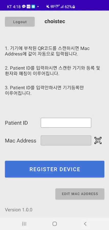 자사(Chois Technology)의 온도계 장비를 CMS웹상에 등록 할 수 있는 앱입니다.