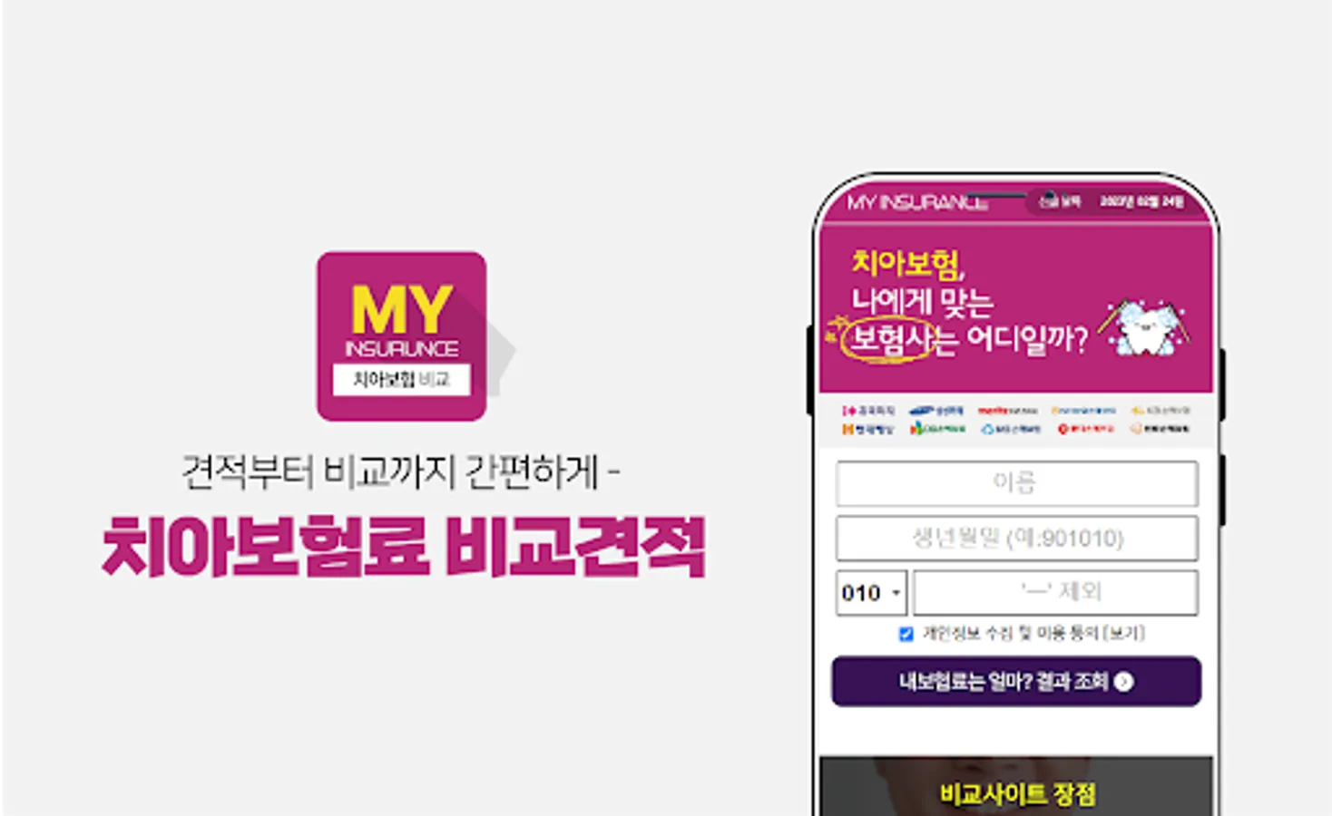 - You can compare / quote / calculate dental insurance from major insurance companies in Korea by simply entering information without membership registration or complicated authentication procedures!