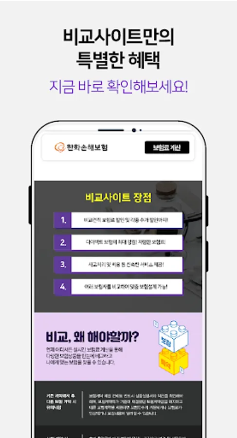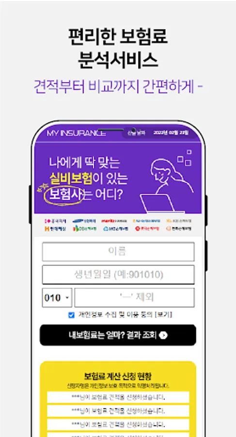 You can easily find a variety of actual insurance with strong guarantees in the insurance premium confirmation app on the actual insurance comparison site. You can compare actual insurance products from major domestic insurance companies and quickly calculate the insurance premium that suits you. Simply look up the insurance you signed up for and find the private insurance that's right for you!