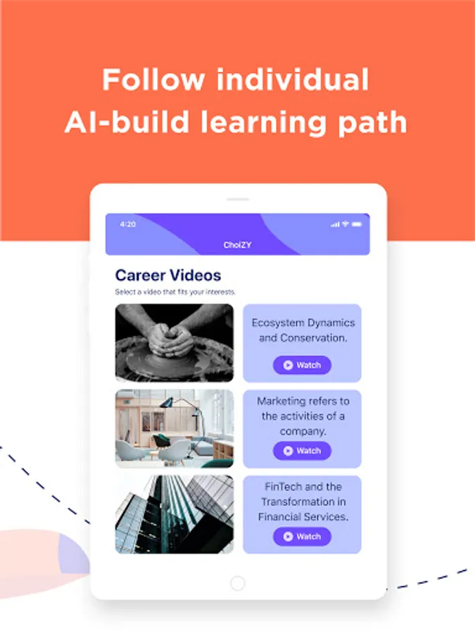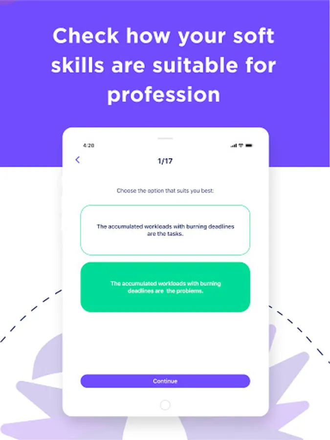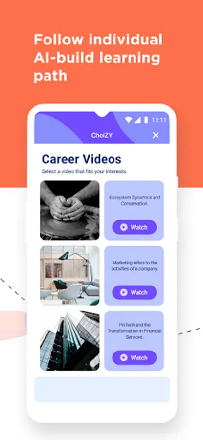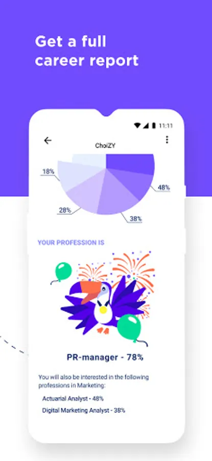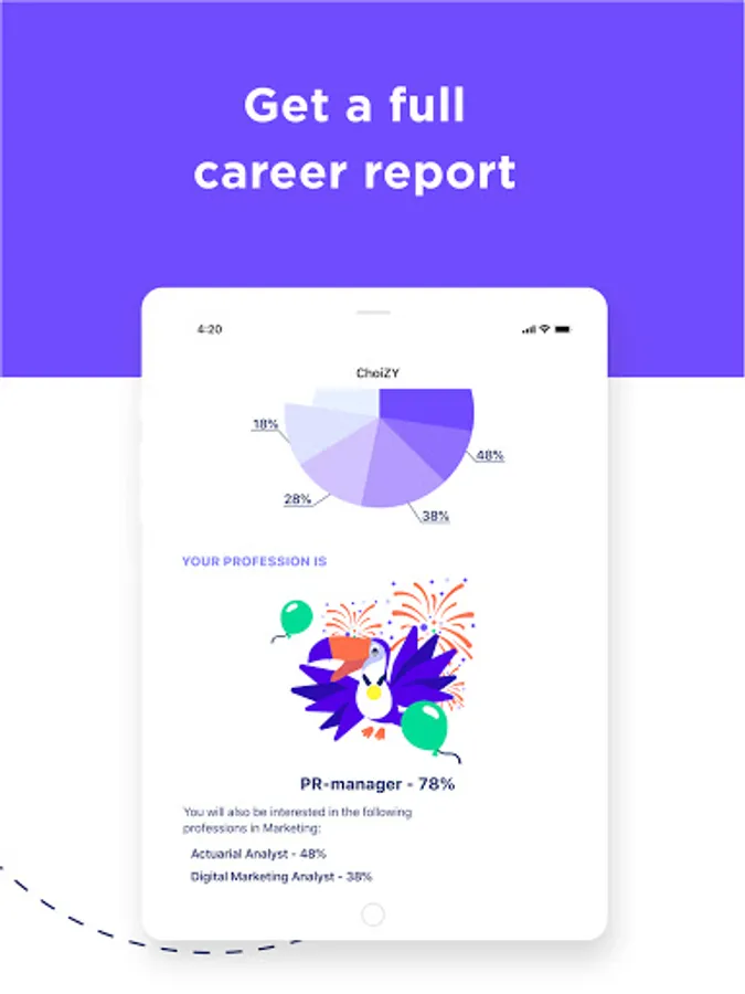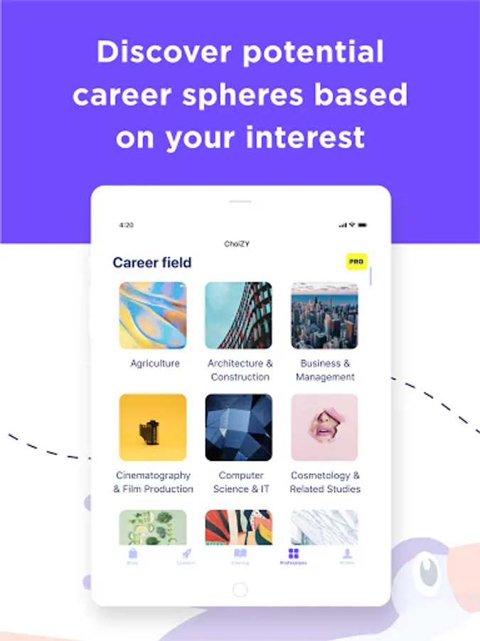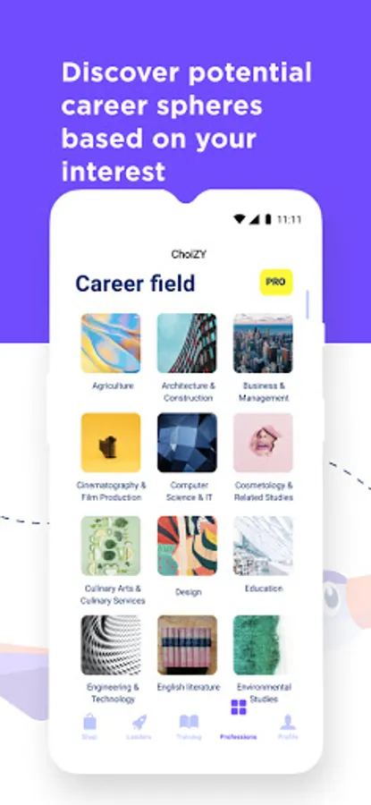 Discover hundreds of jobs to find your ideal one with the ChoiZY app! The Artificial Intelligence (AI) of the app has designed a unique personal learning path for you based on your skills, interests and ambitions. Have at least a 10- minute training a day, and in several weeks you will know which profession might become a dream of your job!
