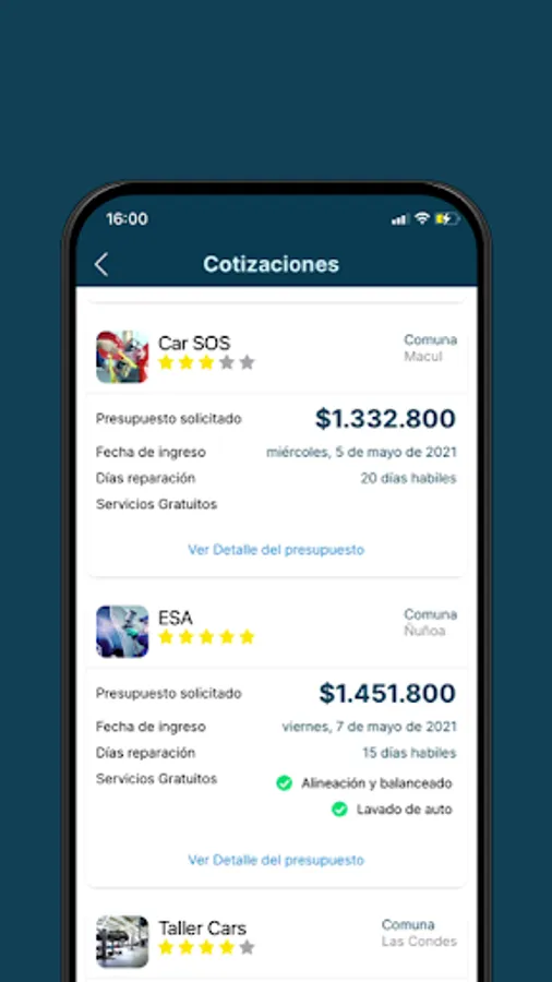 With the App, in simple steps you create a profile, detail the problem, upload the photos and choose your date of entry. up to 4 workshops will offer to repair your car. When you choose the option that best suits you according to its price, extra services and valuation, a match will be generated and your car will be scheduled for repair.