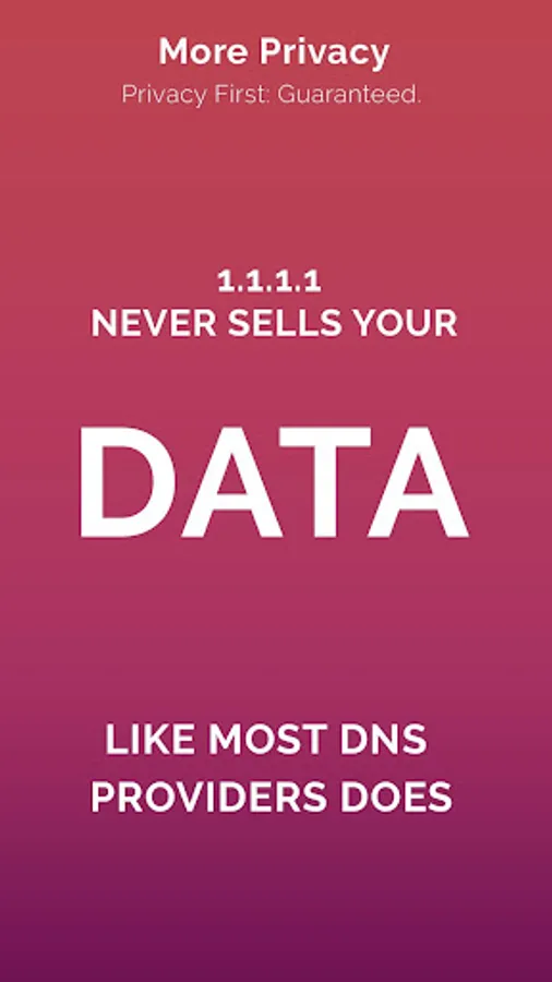 • Privacy First : Cloudflare will never log your IP address and sells your data. They retained KPMG to audit their systems annually to ensure that they're doing what we say. This means, complete freedom of internet, no sneaking.